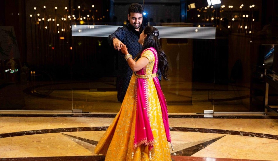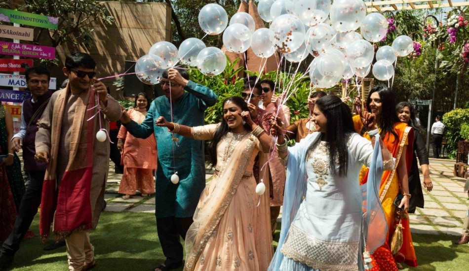 Life took a full circle for Sakshi and Jay, when they first met through a common friend at his engagement which led them to eventually tie the knot in a simple yet elegant wedding at the Four Seasons Hotel Mumbai. Bon Evento made their dream wedding come true with their impeccable taste and designs keeping in mind the minutest details while planning. Ganesh Pooja and Haldat-- The venue was decorated in green and yellow hues, birds, flowers, and the highlight was the couple’s miniature dolls which added a personal touch to this private function. Held at the bride’s residence, this Marwari function saw all the married ladies in the house acquaint the new bride-to-be with her daily responsibilities at her new home. Sangeet-- The Sangeet gala decorated with their wedding hashtag #inkeJAYSAkoinahi enticed the guests near the entranceway to take their cameras out and click pictures. After a stunning entrance where the couple entered with a flash mob and enthralling dance performances by their families on famous hit tracks, the couple exchanged rings and celebrated the evening by cutting a chandelier designed cake. Bhaat-- The day started early with a Bhaat ceremony initiated by the bride’s maternal family. It was aptly decorated with colorful elements such as swings, teapots, crates, and ladders. Her girl squad held glittering balloons to welcome her. Haldi-- For the haldi function, as Sakshi was smeared by the traditional turmeric paste, she was showered with buckets full of water and tons of marigold petals by her family and friends. Mehendi-- Their mehendi function incorporated all things the couple fancied from cricket, coke, and fries to a tattoo artist who drew a semi-permanent design depicting their wedding logo that was integrated with the mehendi and stood out with its black color. All the boys in the family got ‘JAYHO’ painted on their palms, so when everyone did the namaste to welcome the guests, they would see the wedding hashtag. Wedding-- Their wedding was a vibrant affair, as it observed a rich yellow color palette owing to Jay’s love for pineapples and Sakshi’s fondness for potatoes. It was adorned with fresh pineapples and placards displaying funny anecdotes for their tabletops. With a live potato corner serving fries, mashed potatoes, wedges, potato shots, the guests eagerly made their way to the stall. However, the highlight was the split personality photo-booth which expressed Sakshi’s persona with Bollywood elements on one side and Jay’s persona with Lord Shiva’s psychedelic musical elements on the other, creating a fun twist. As soon as the couple exchanged their varmalas, the Gayatri Mantra was played while the bubble machines blew bubbles into the air. Venue: Four Seasons Hotel, Mumbai Wedding Planner & Hospitality- Bon Evento Photography: Shah Photos