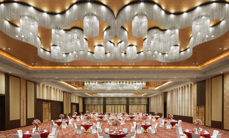 Fairy tale weddings that are remembered long after they are done. Corporate conclaves planned with clockwork efficiency. Sales meets that achieve all their targets. The Mansion has played host to a wide panoply of events. This vast pillarless, high-ceilinged banquet hall, one of the largest in North India, encompasses 2322 sq. m. including 1022 sq. m. of pre-function space. Though this hall is truly expansive, every little detail has been thought of. The pre-function area and the kitchen are seamlessly connected with one another ensuring that work can happen behind the scenes without intruding into the event space. A separate access and exit enables guests attending an event to enter and leave without having to move through the rest of the Hotel. This banquet hall in Agra can also be divided into 2 smaller venues, each of which can accommodate 300 to 900 guests.Show Less