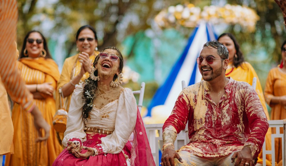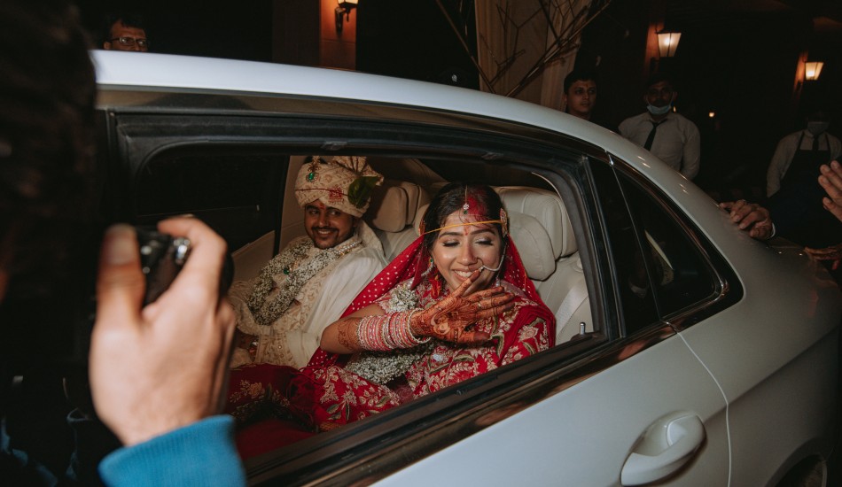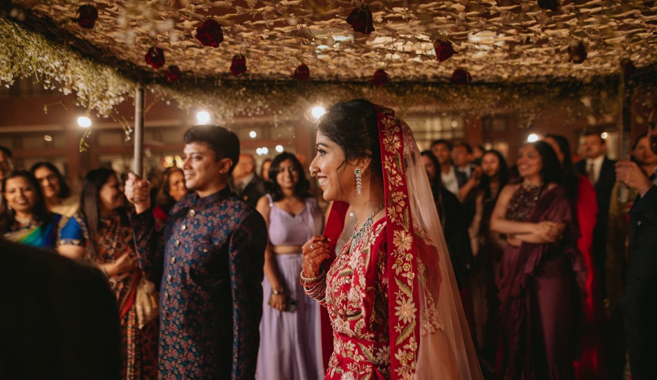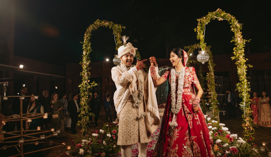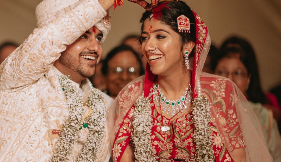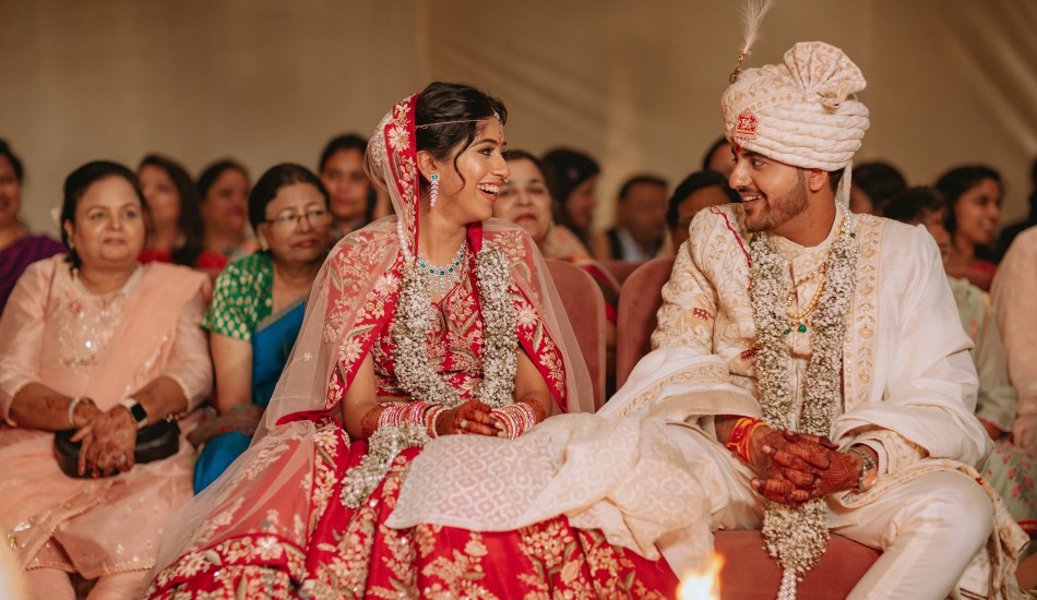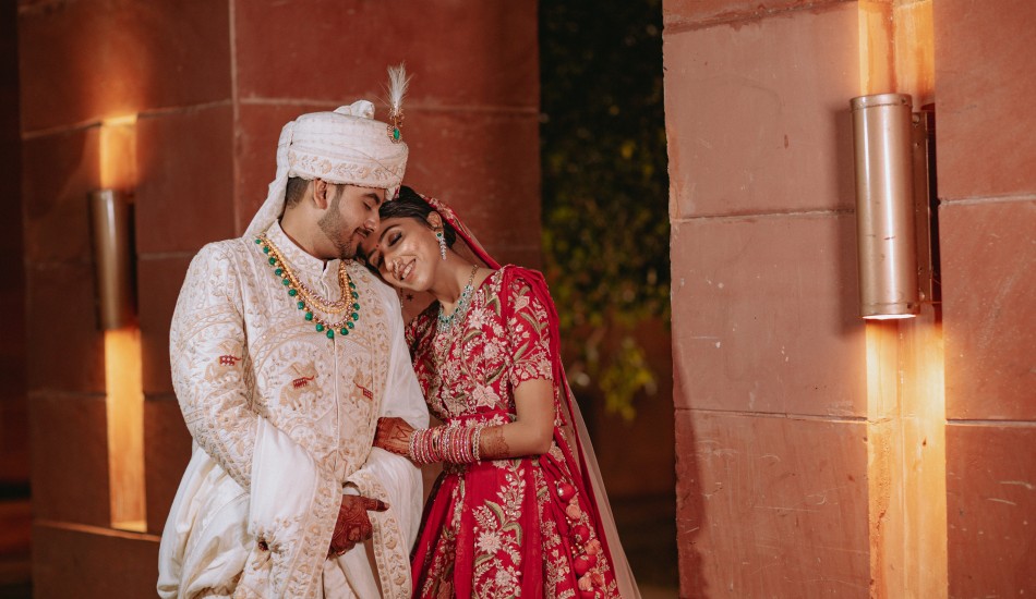 "Bound by love's embrace, Aditya and Urvi paint life's canvas with their intertwined souls."